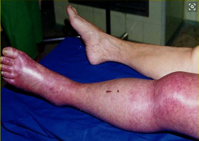 下肢深静脉血栓常见症状为:下肢突然肿胀、疼痛、皮肤发红或发紫,皮肤温度升高。